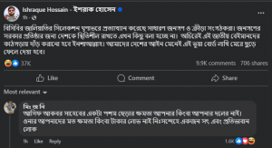 সোমবার (৬ অক্টোবর) সন্ধ্যায় ফলাফল ঘোষণার পরপরই বিএনপি নেতা ইশরাক হোসেন ফেসবুকে এক তীব্র প্রতিক্রিয়া জানান। তিনি পোস্টে লেখেন—