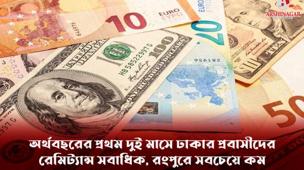 অর্থবছরের প্রথম দুই মাসে ঢাকার প্রবাসীদের রেমিট্যান্স সর্বাধিক, রংপুরে সবচেয়ে কম