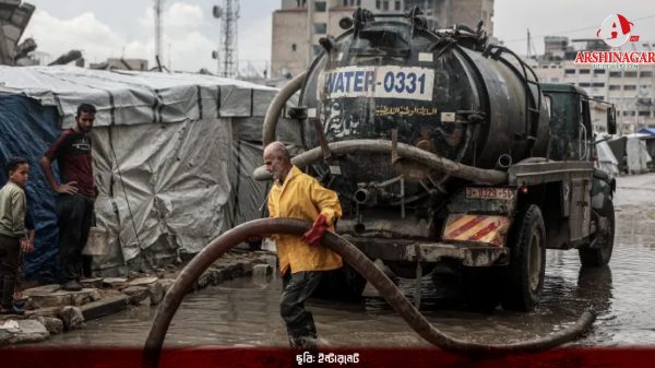গাজার তাঁবু ক্যাম্পে বন্যা শীতের শুরুতেই ভয়াবহ দুর্ভোগে বাস্তুচ্যুত ফিলিস্তিনিরা