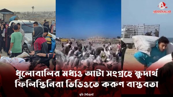 ধুলোবালির মধ্যেও ‘আটা’ সংগ্রহে ক্ষুদার্থ ফিলিস্তিনিরা, ভাইরাল ভিডিওতে করুণ বাস্তবতা